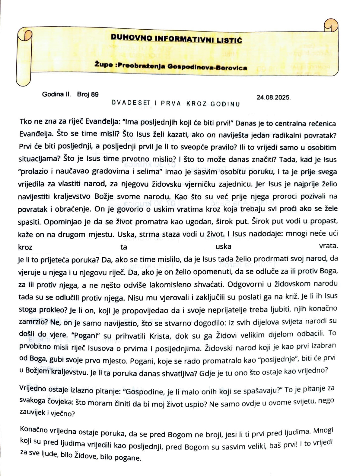DUHOVNO INFORMATIVNI LISTIĆ BR. 89