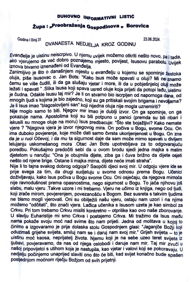 Duhovno informativni listić br 31