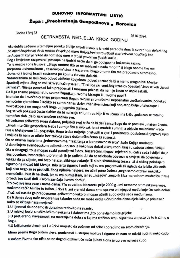 Duhovno informativni listić br 33