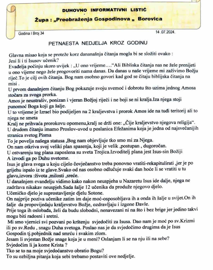 Duhovno informativni listić br 34