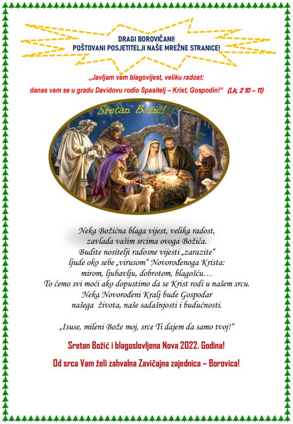 Dragi borovičani i svi prijatelji Borovice te najljepšega zavičajnog kraja, ovim putem želimo vas izvijestiti o proteklim najsvetijim danima koji su Borovicu blagoslovili i ove…