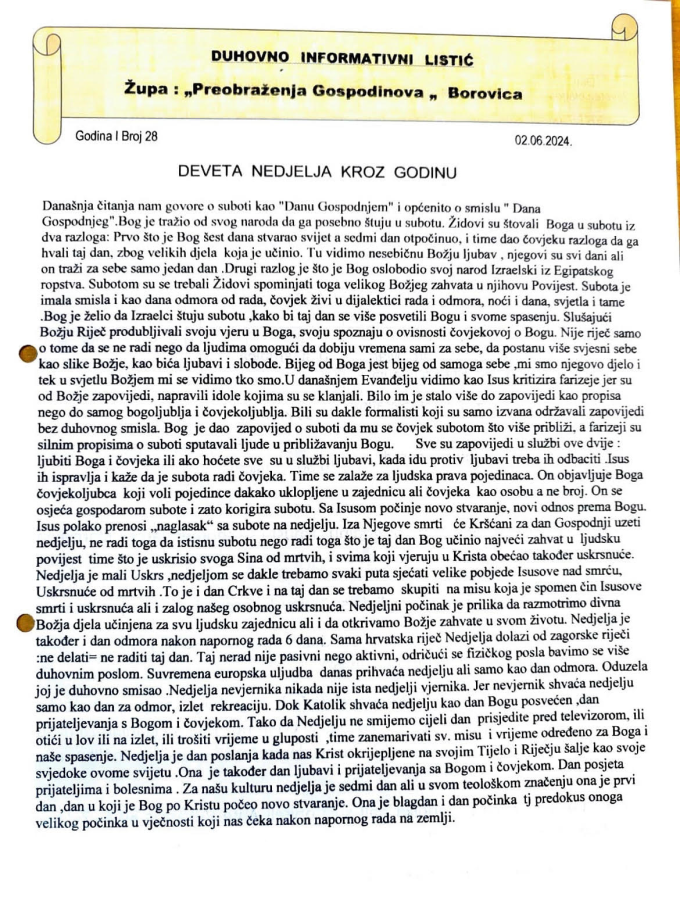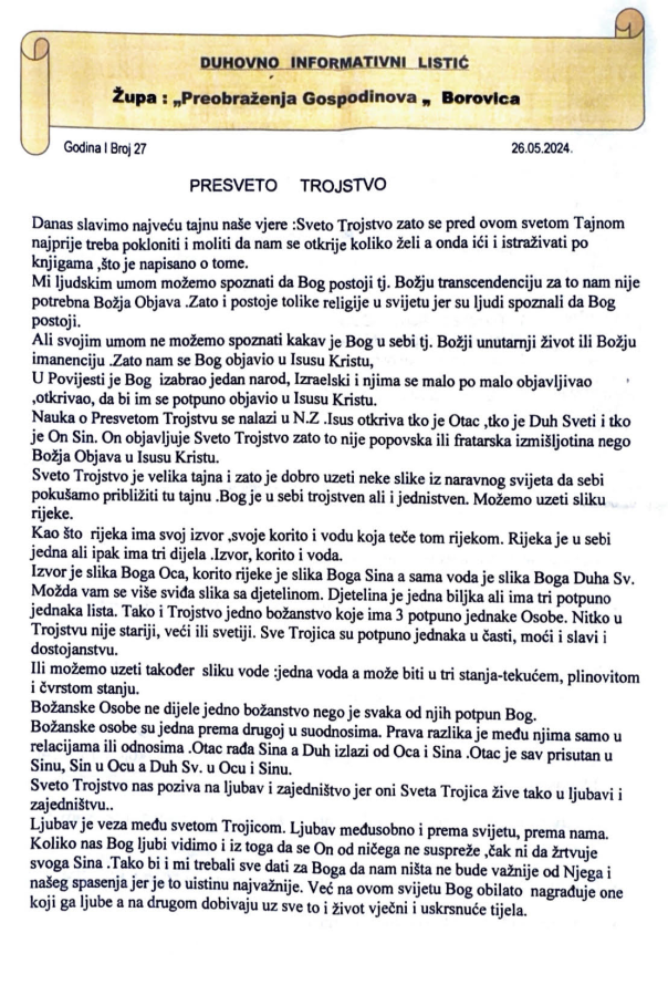Duhovno informativni listić Župe “Preobraženja Gospodinova” Borovica; broj: 26
