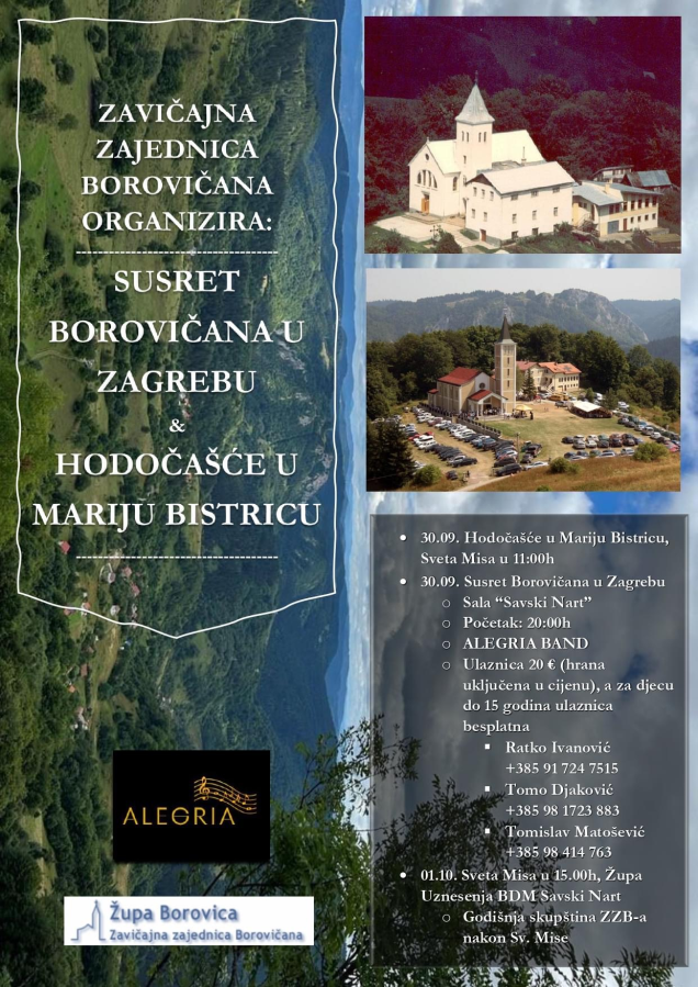 ZAVIČAJNA ZAJEDNICA BOROVIČANA ORGANIZIRA: SUSRET BOROVIČANA U ZAGREBU & HODOČAŠĆE U MARIJU BISTRICU