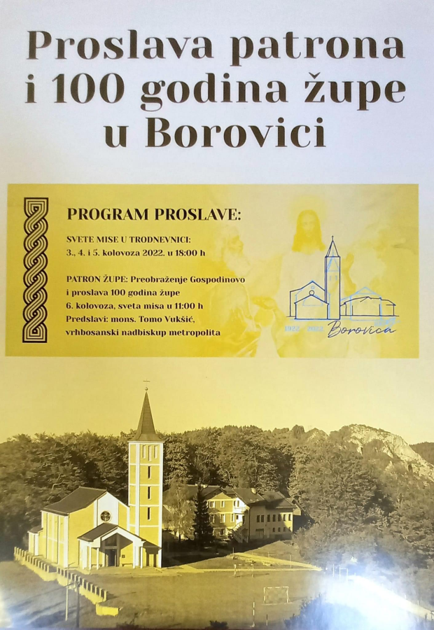 Župa Preobraženja Gospodinova u Borovici ponad Vareša, proslavila je 6. kolovoza svoj patron i 100 godina postojanja. Sveto misno slavlje tom prigodom predslavio je vrhbosanski…
