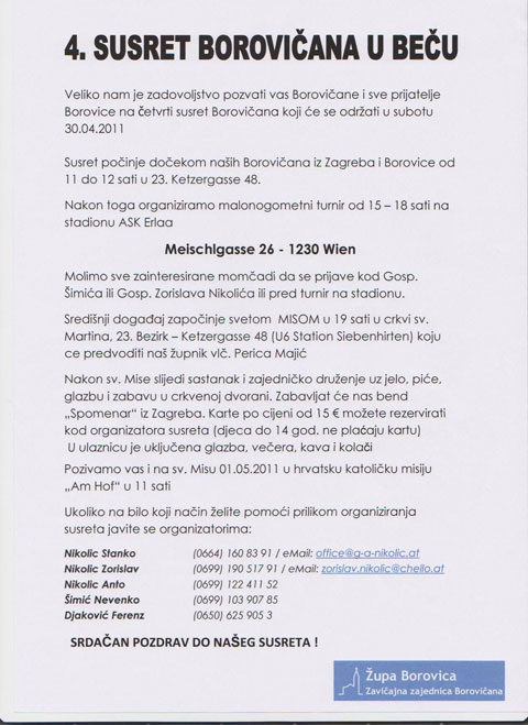 DOK DLAN O DLAN GODINA PROĐE, VRIJEME DA SE OPET NA SASTANAK BOROVIČANA U BEČU,DOĐE.Veliko nam je zadovoljstvo pozvati vas…Objavljeno 27.04.2011